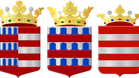 Links: nieuwe wapen gemeente Houten sinds 1962, midden: oude wapen gemeente Houten (tot 1962), rechts: oude wapen van gemeente Schalkwijk (tot 1962).